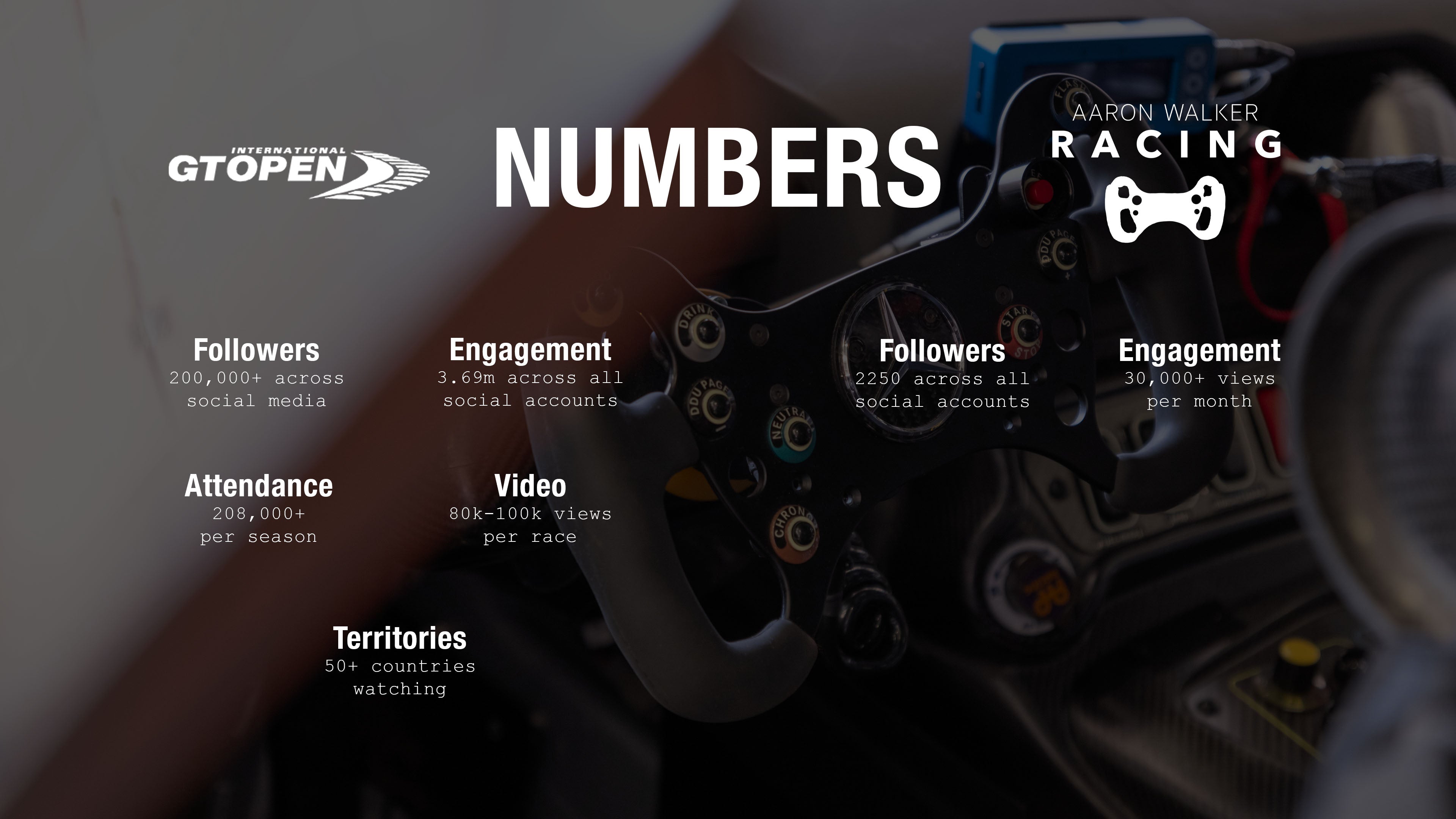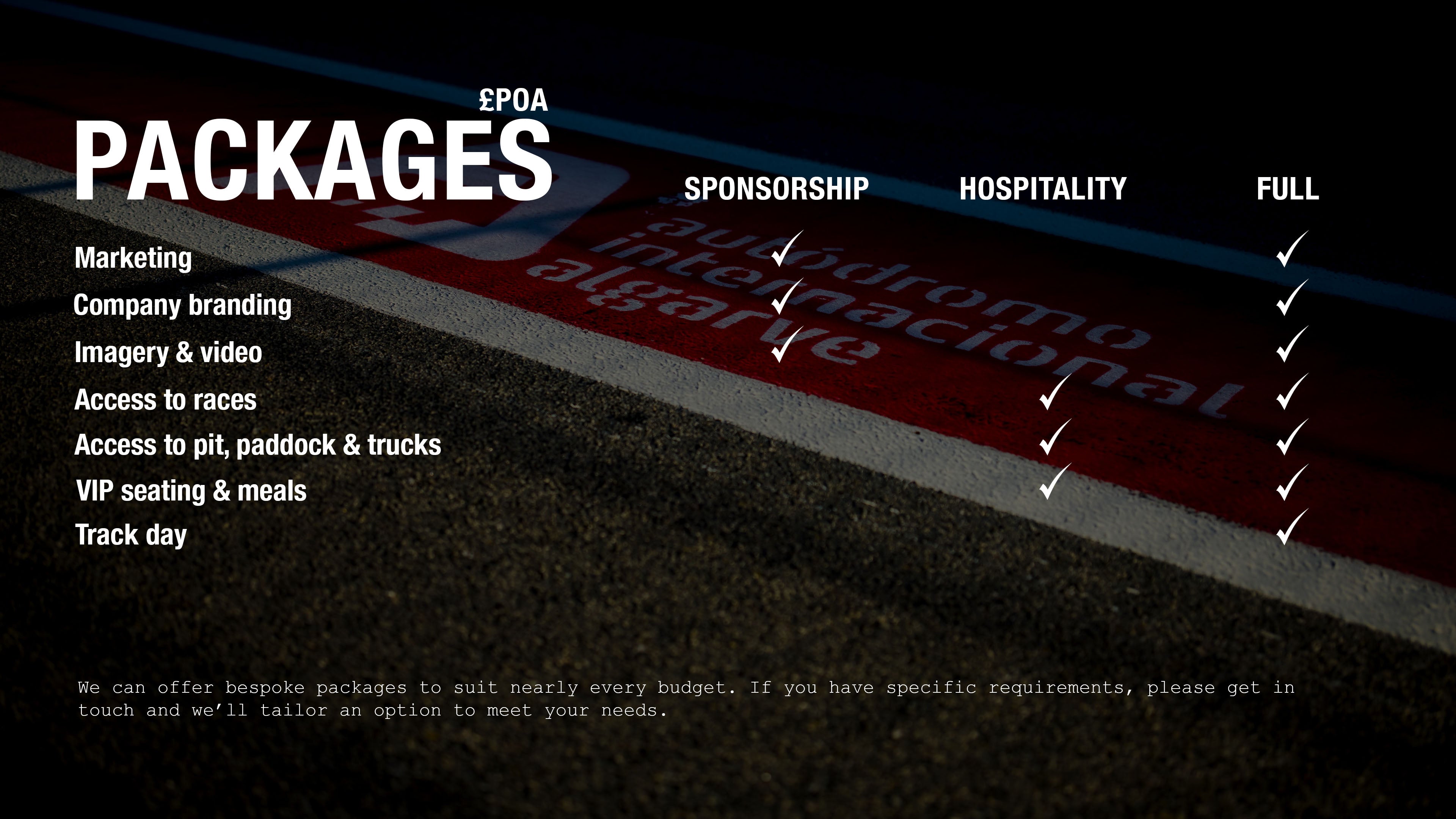 Join Aaron’s success story as a sponsor and put your brand at the heart of a winning team. Flexible packages are available for all budgets, offering brand exposure on a race-winning car, behind-the-scenes access on race weekends, client hospitality and more.